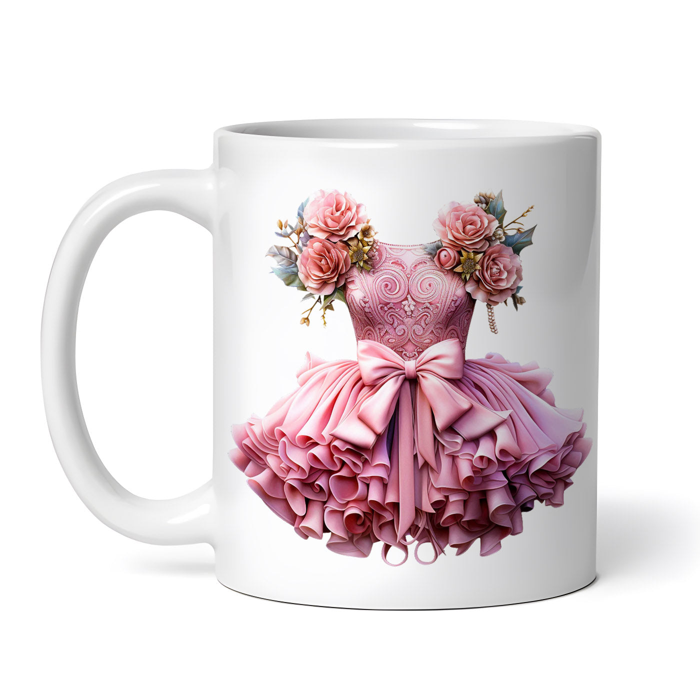 Cana ceramica, Rochie roz cu trandafiri, NO6531, 330 ml, Multicolor