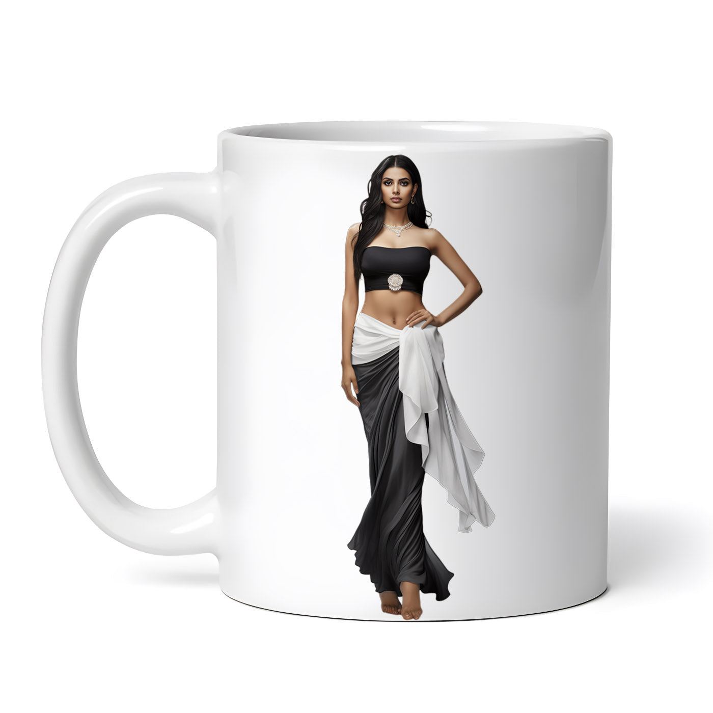 Cana ceramica, Rochie sexy negru alb, NO5425, 330 ml, Multicolor