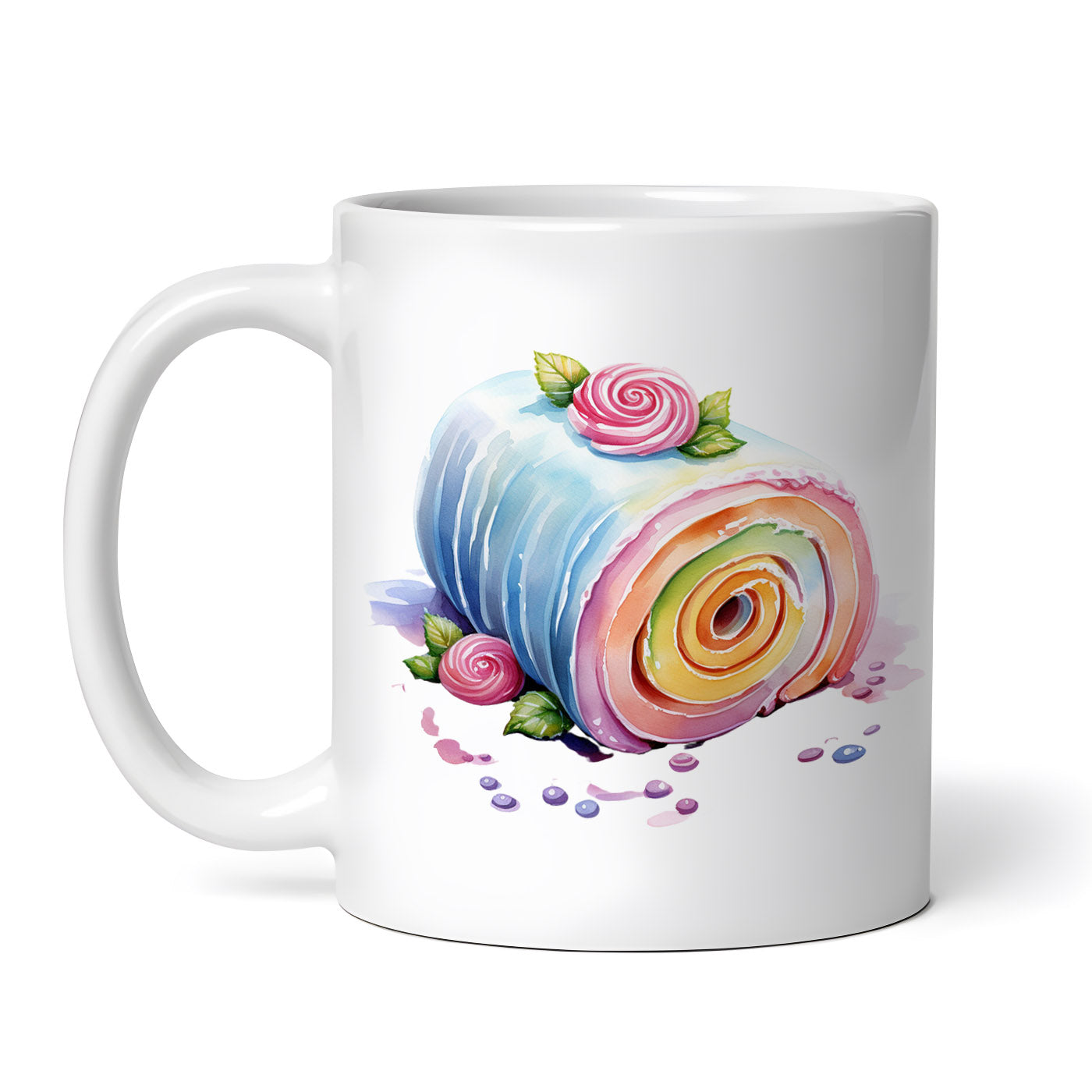 Cana ceramica, Rulada curcubeu cu ornament floral, NO6432, 330 ml, Multicolor