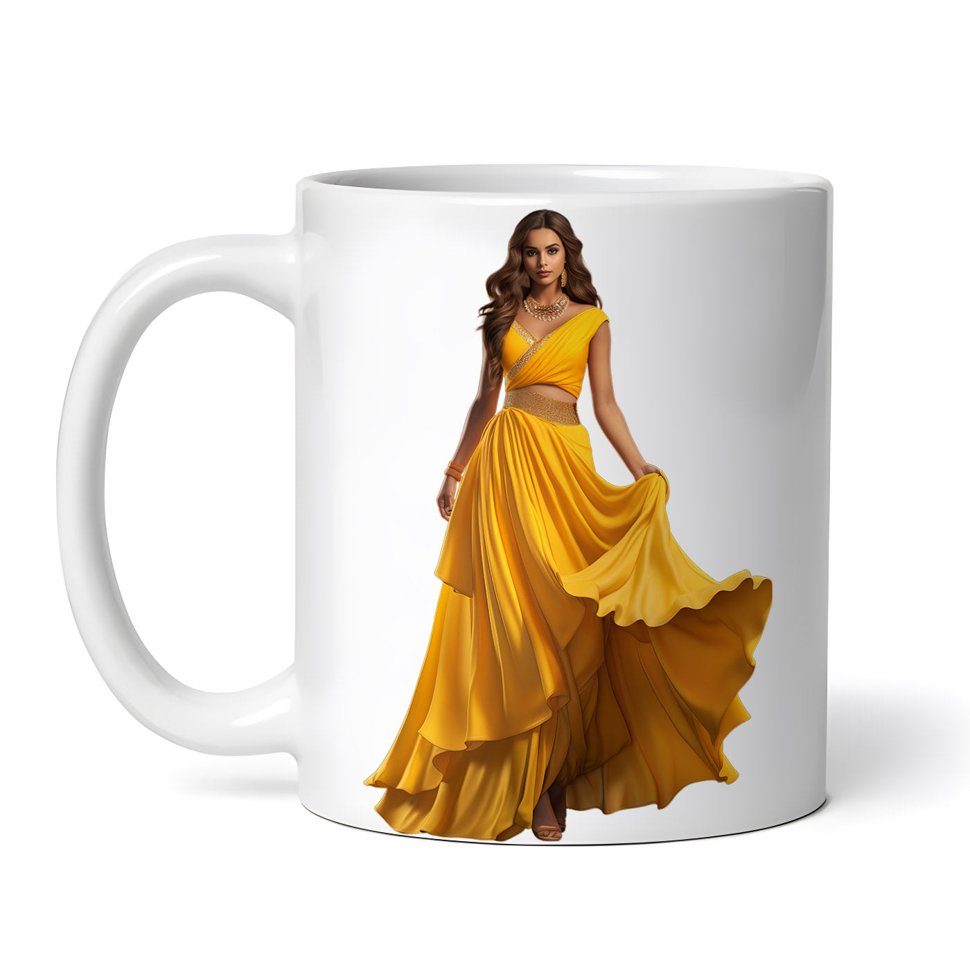 Cana ceramica, Saree rochie indiana galben auriu, NO1482, 330 ml, Multicolor