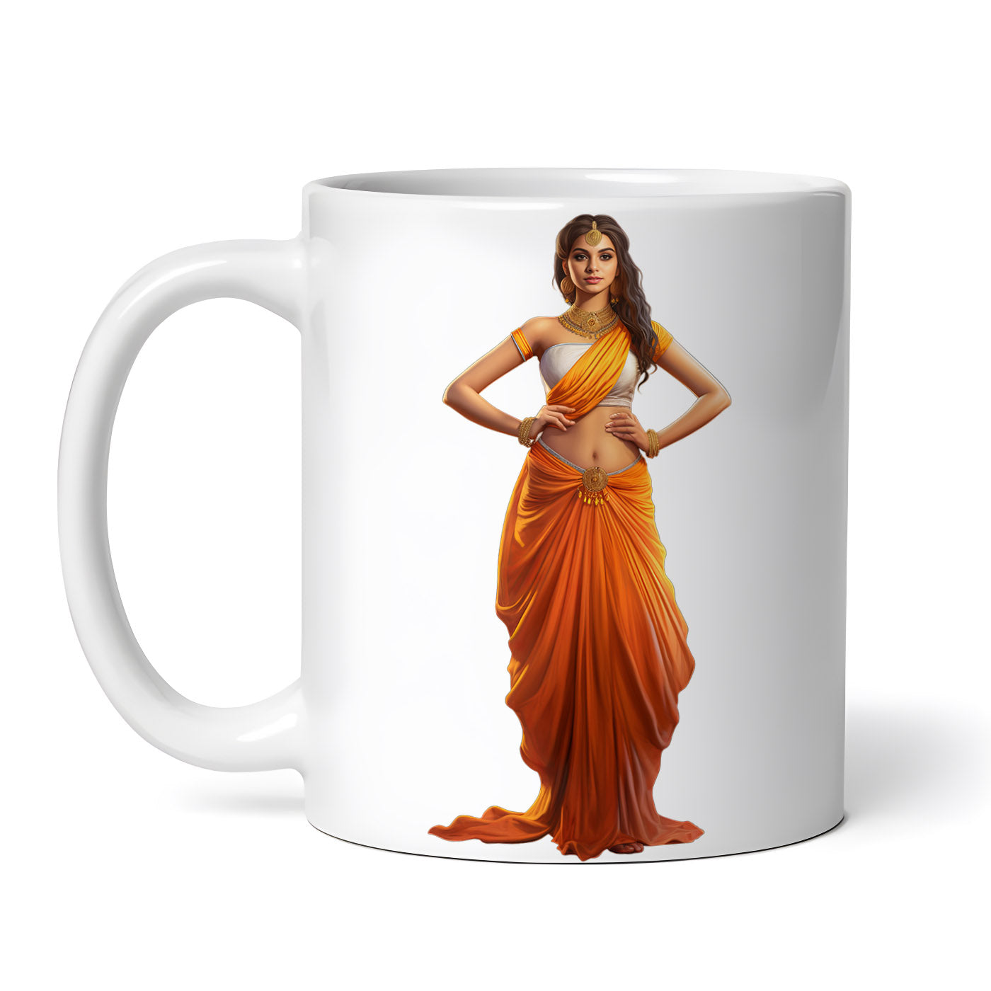 Cana ceramica, Saree rochie indiana portocaliu, NO715, 330 ml, Multicolor