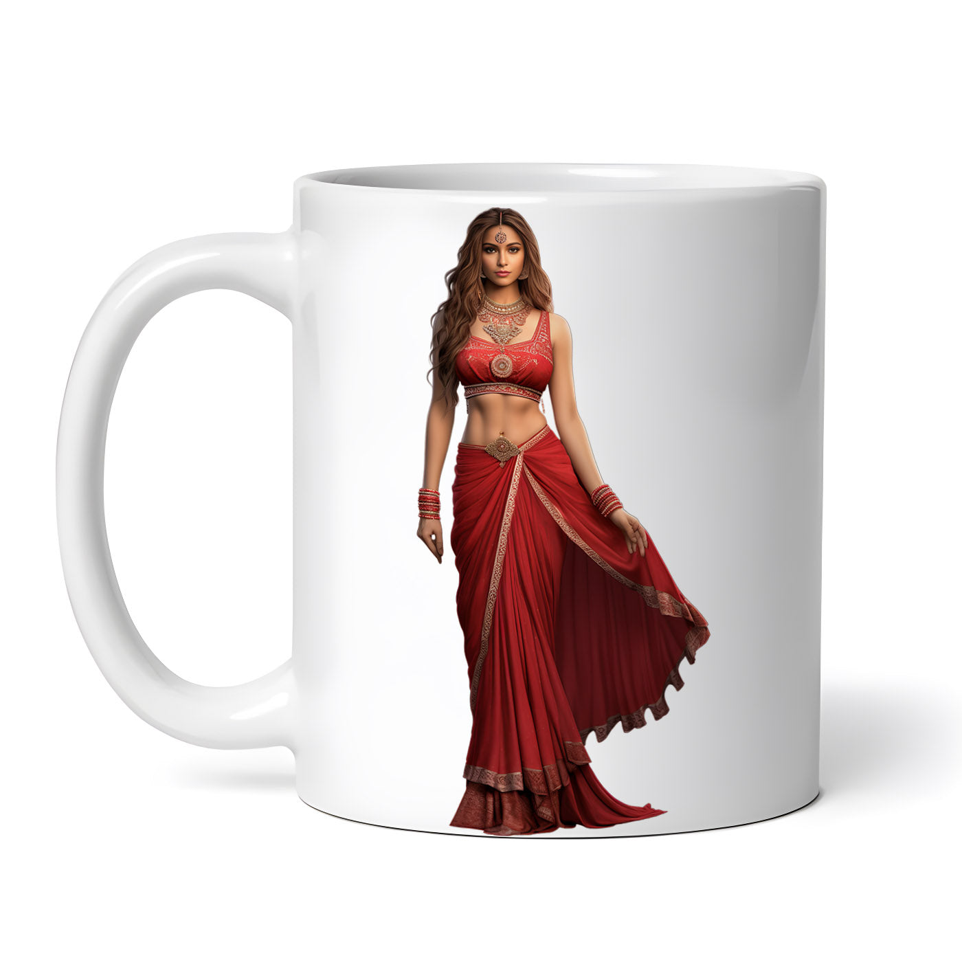 Cana ceramica, Saree rochie indiana rosie, NO630, 330 ml, Multicolor
