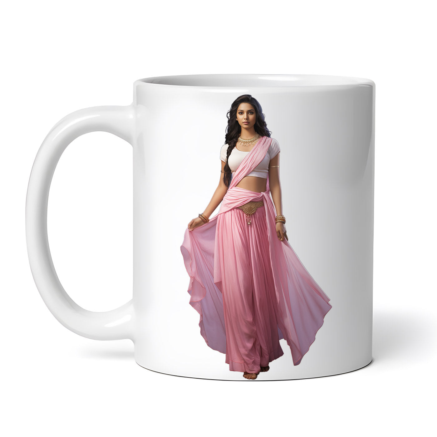 Cana ceramica, Saree rochie indiana roz, NO6365, 330 ml, Multicolor