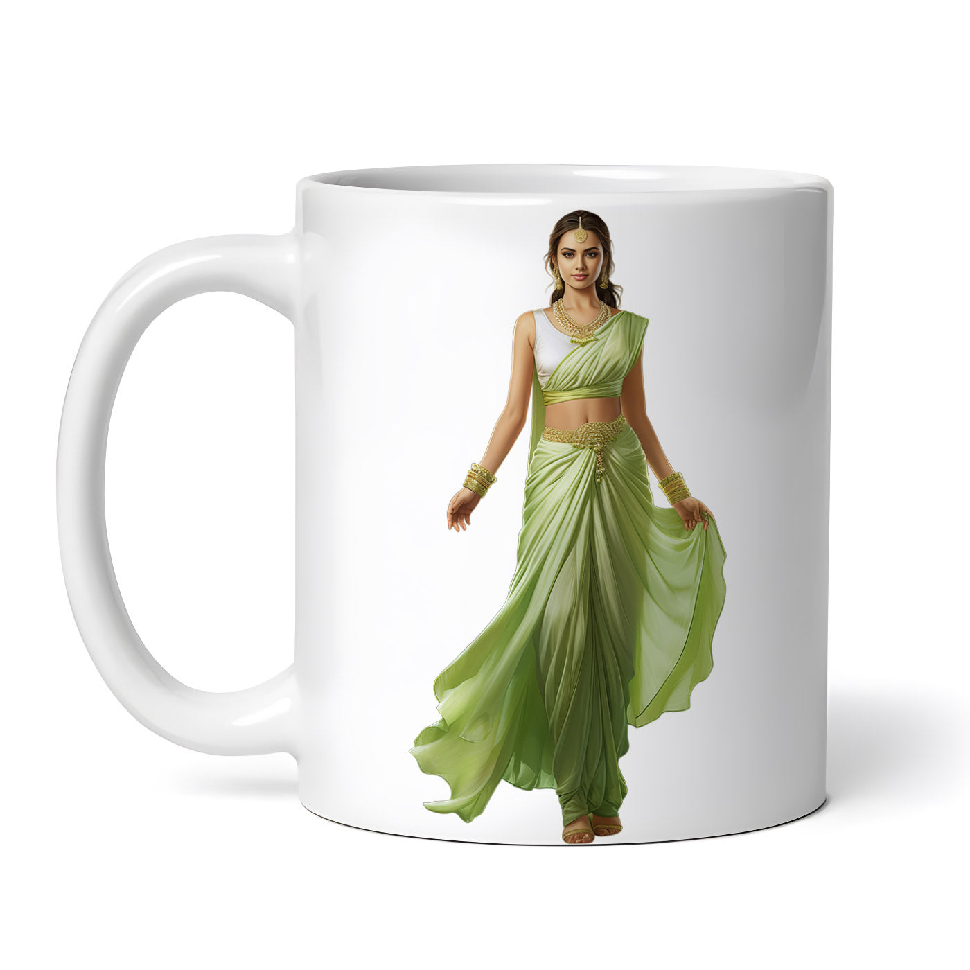 Cana ceramica, Saree rochie indiana verde, NO824, 330 ml, Multicolor