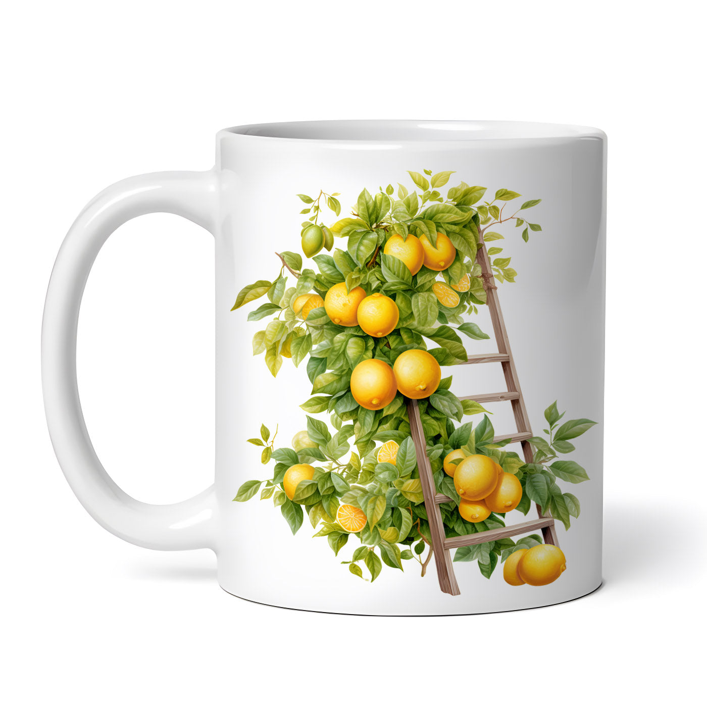 Cana ceramica, Scara din lamai, NO3096, 330 ml, Multicolor
