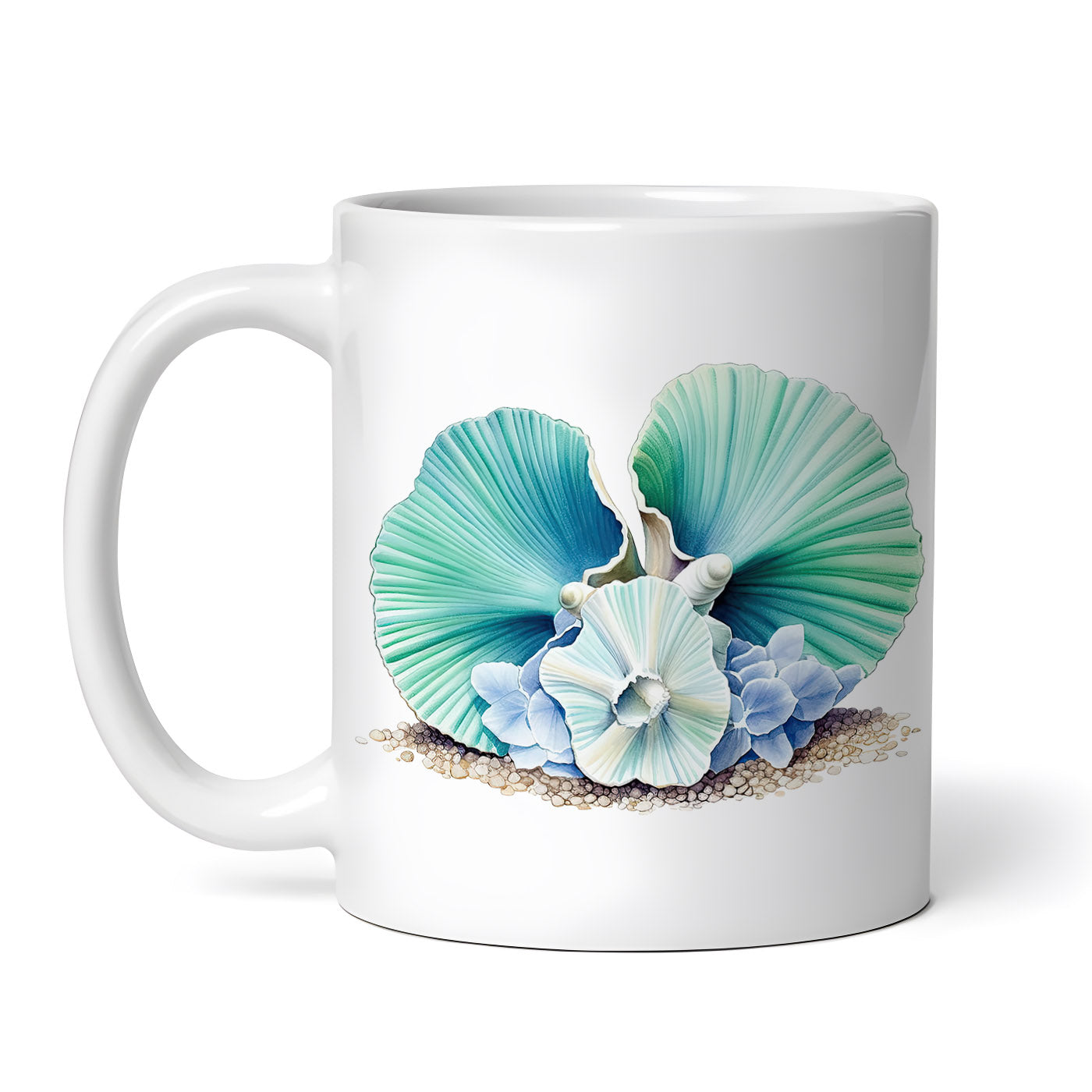 Cana ceramica, Scoici si flori, NO3856, 330 ml, Multicolor