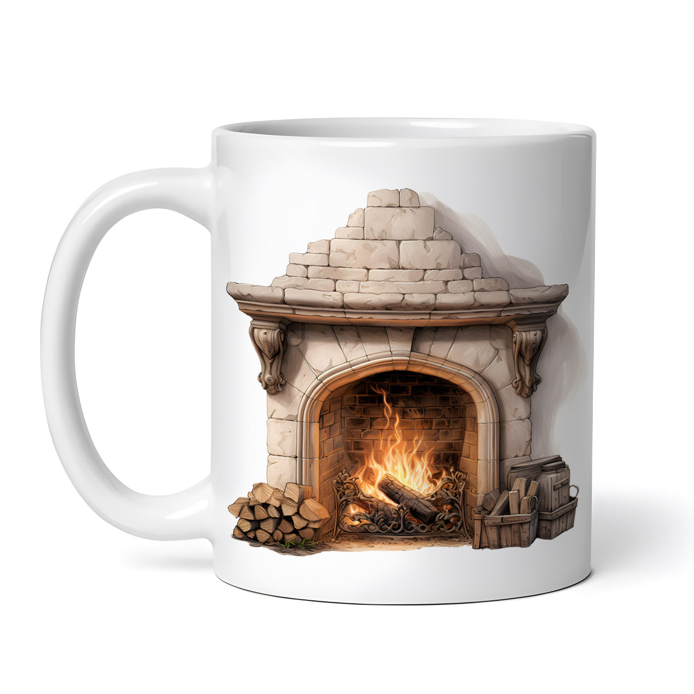 Cana ceramica, Semineu cu lemne, NO1412, 330 ml, Multicolor