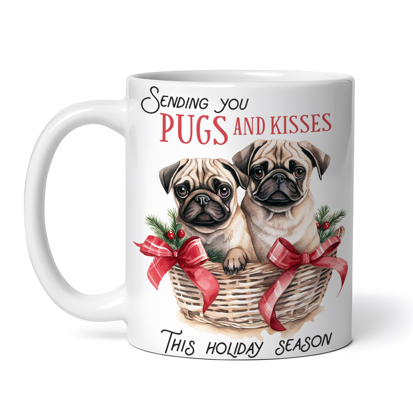 Cana ceramica, Sending you Pugs and kisses this holiday season, NO2182, 330 ml, Multicolor