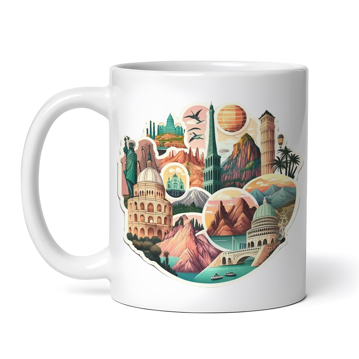 Cana ceramica, Set simboluri de calatorie, NO11624, 330 ml, Multicolor