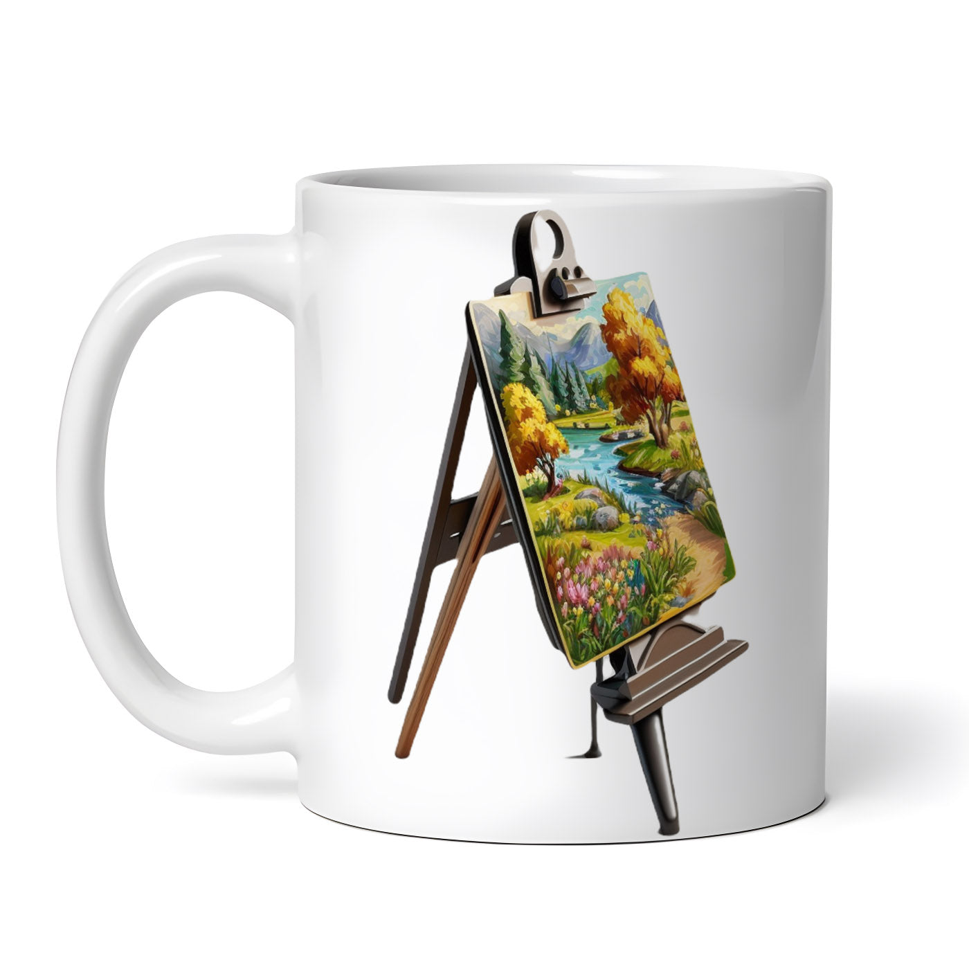 Cana ceramica, Sevalet cu peisaj, NO7142, 330 ml, Multicolor