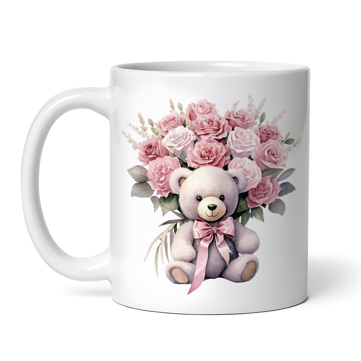 Cana ceramica, Sfantul Valentin Urs cu trandariri alb si roz, NO1296, 330 ml, Multicolor