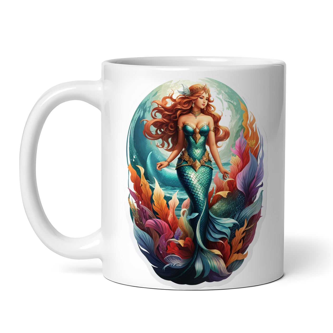 Cana ceramica, Sirena cu parul lung, NO8537, 330 ml, Multicolor