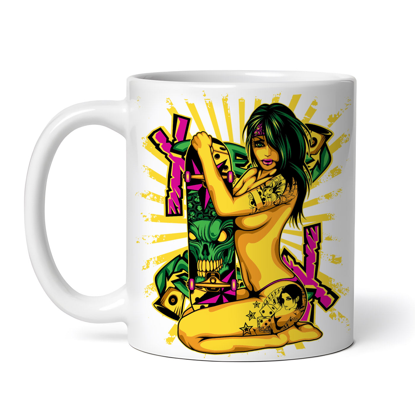 Cana ceramica, Skateboard si vise, NO8005, 330 ml, Multicolor