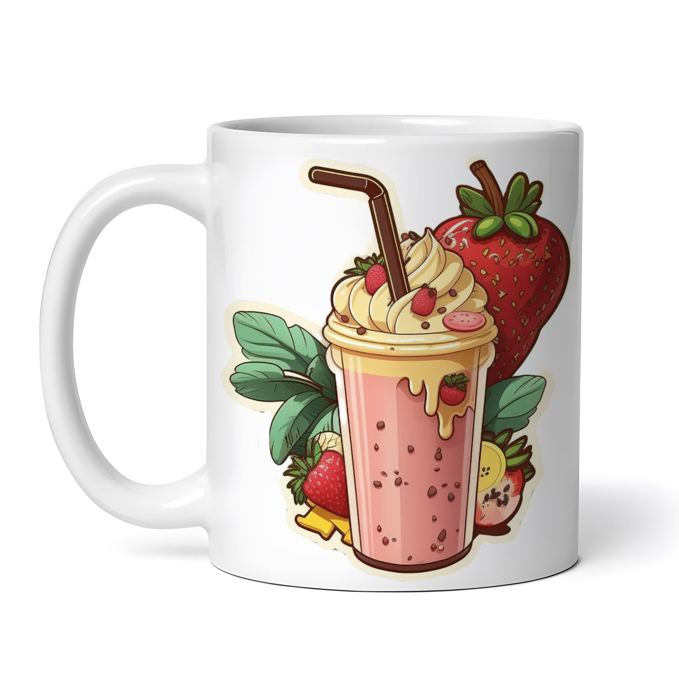 Cana ceramica, Smoothie cu banane si capsuni, NO11042, 330 ml, Multicolor