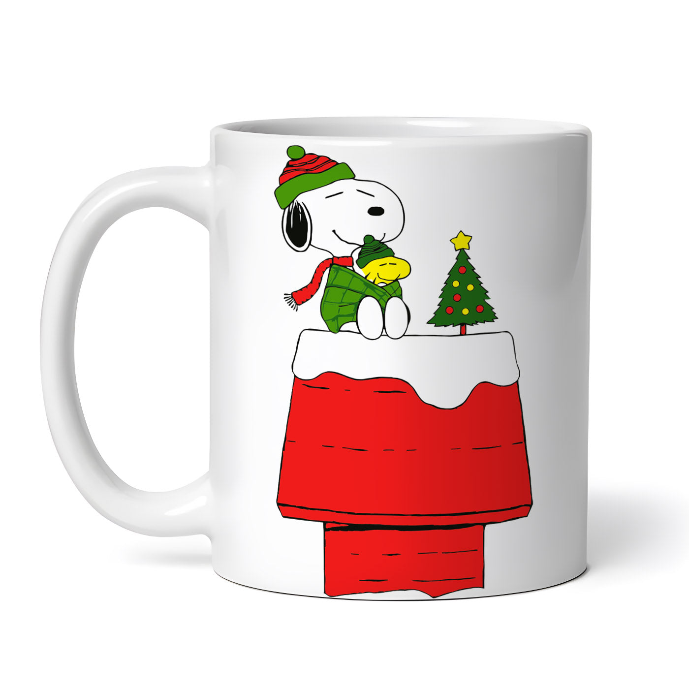 Cana ceramica, Snoopy craciunul sus pe casa, NO6592, 330 ml, Multicolor