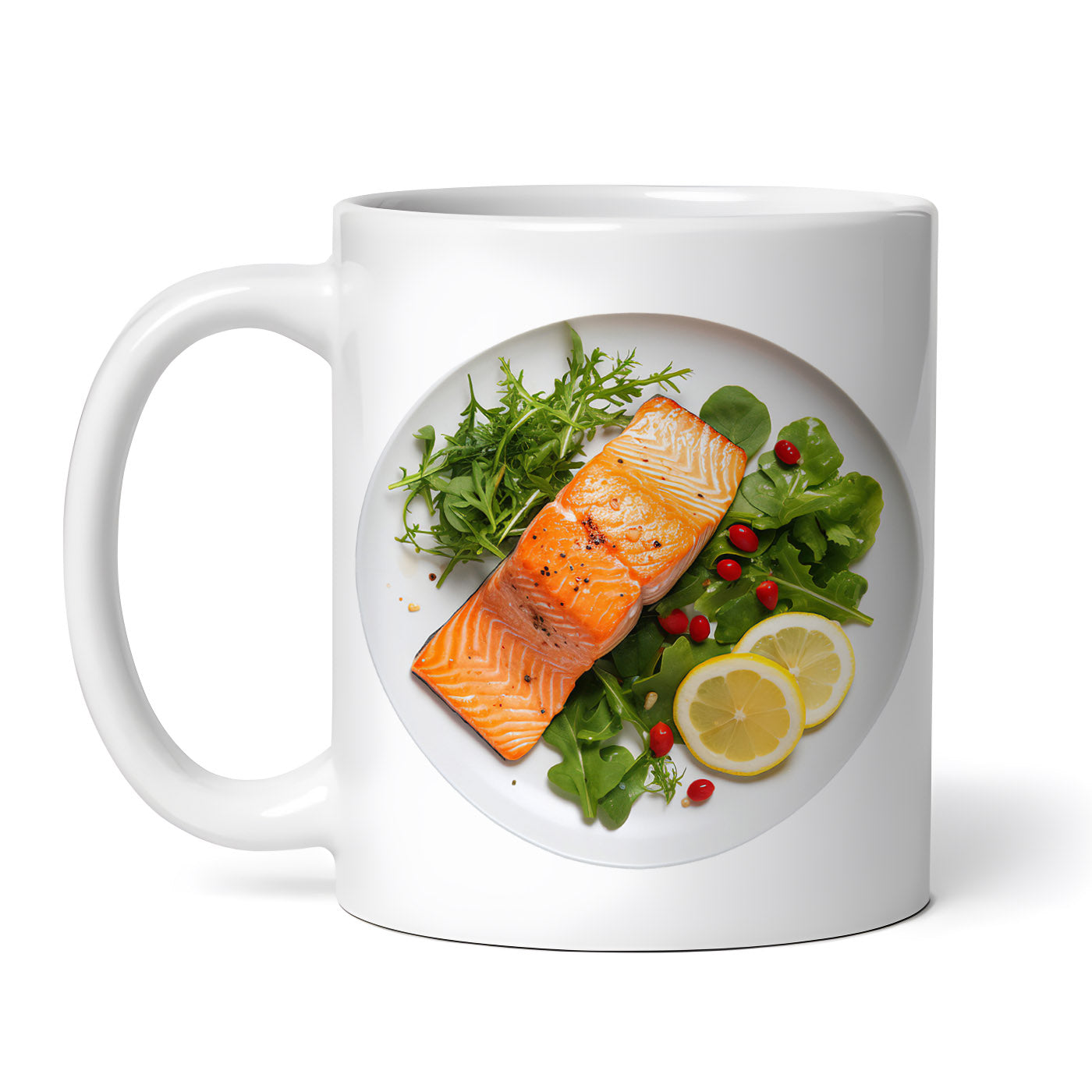 Cana ceramica, Somon cu salata, NO1032, 330 ml, Multicolor