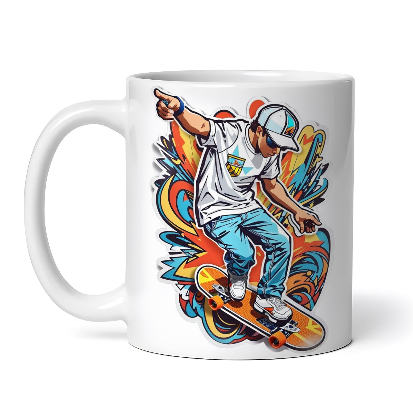 Cana ceramica, Sportiv pe skateboard, NO7378, 330 ml, Multicolor