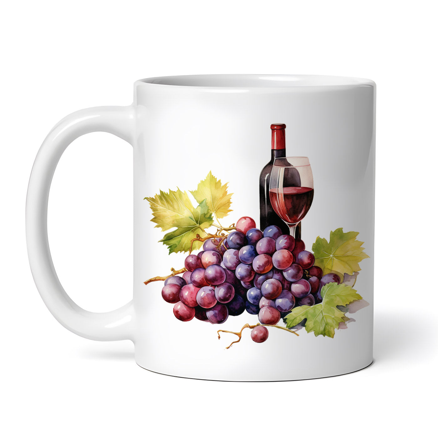 Cana ceramica, Sticla cu vin rosu pahar si strugure, NO4081, 330 ml, Multicolor