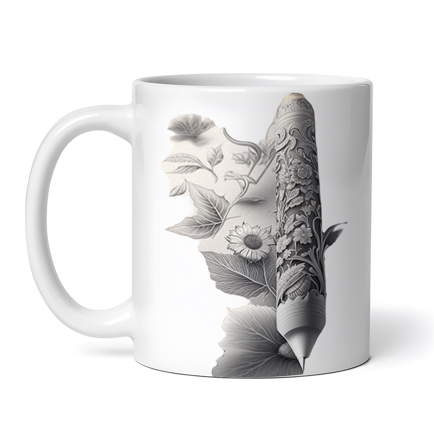 Cana ceramica, Stilou sculptat cu flori, NO6963, 330 ml, Multicolor