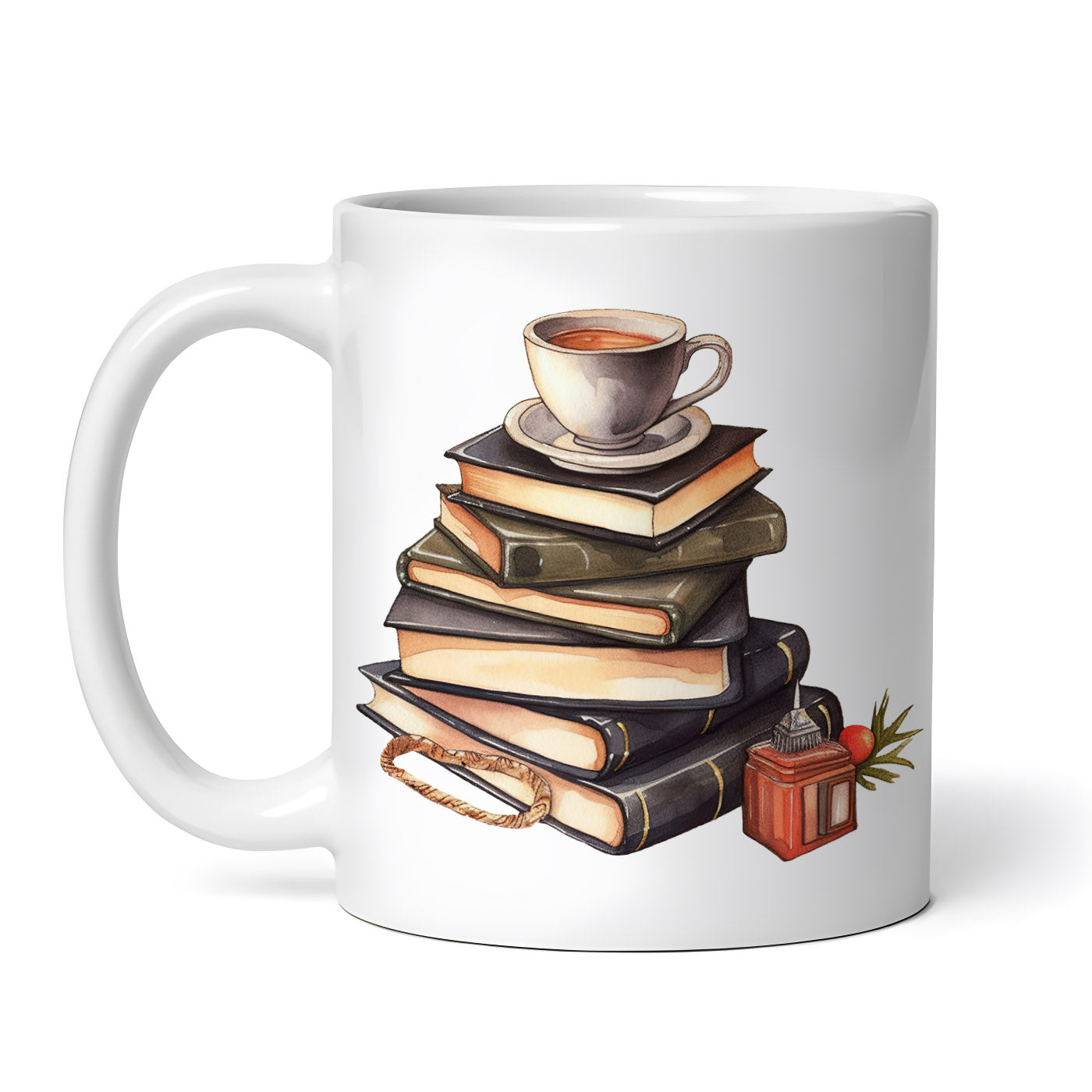 Cana ceramica, Stiva de carti cu ceasca de cafea, NO5114, 330 ml, Multicolor