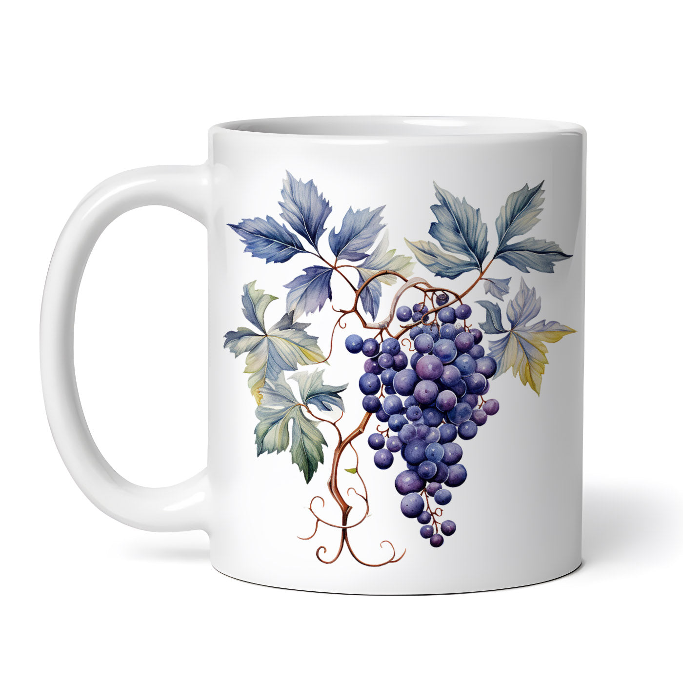 Cana ceramica, Strugure negru cu frunze, NO1368, 330 ml, Multicolor