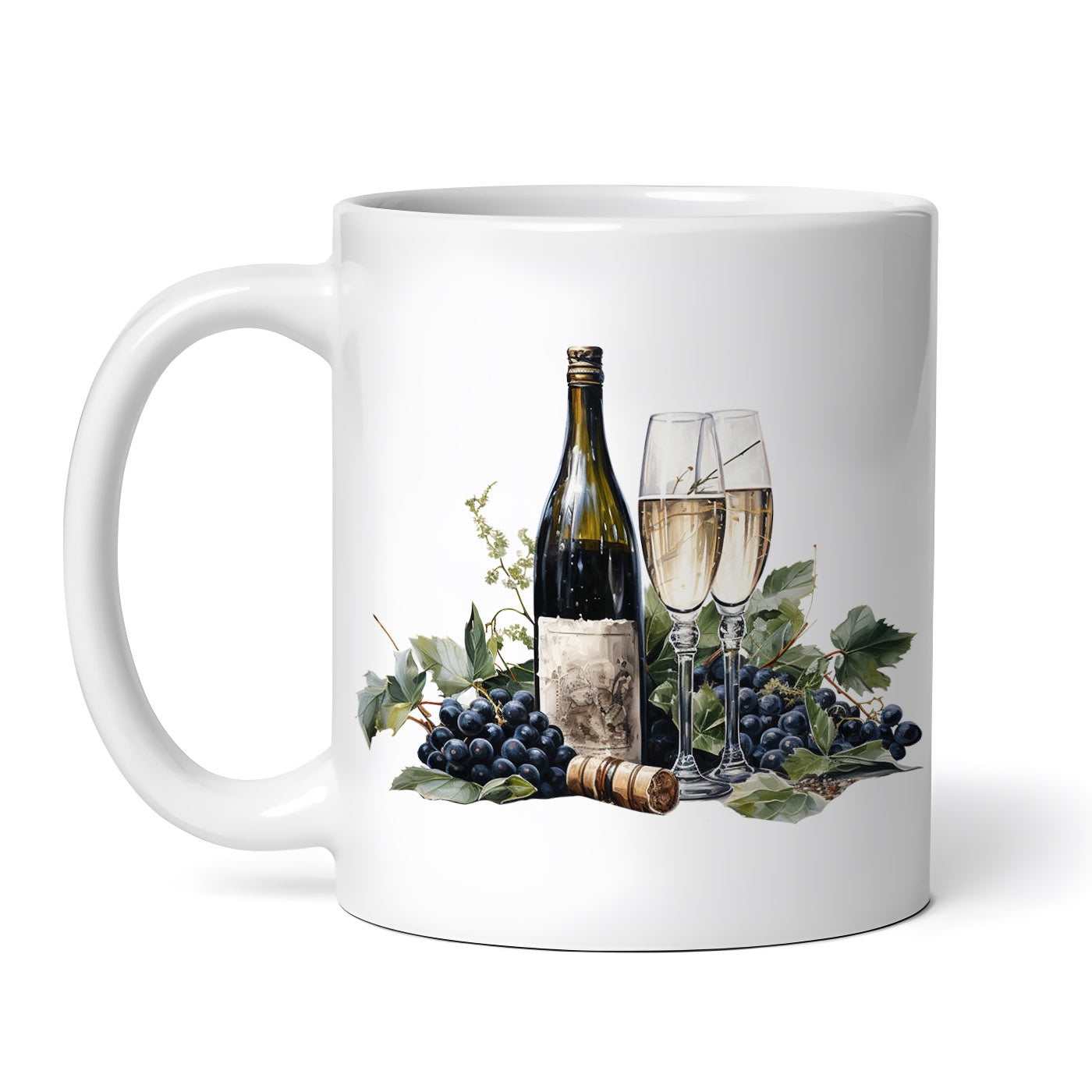 Cana ceramica, Struguri si pahare cu vin, NO1264, 330 ml, Multicolor
