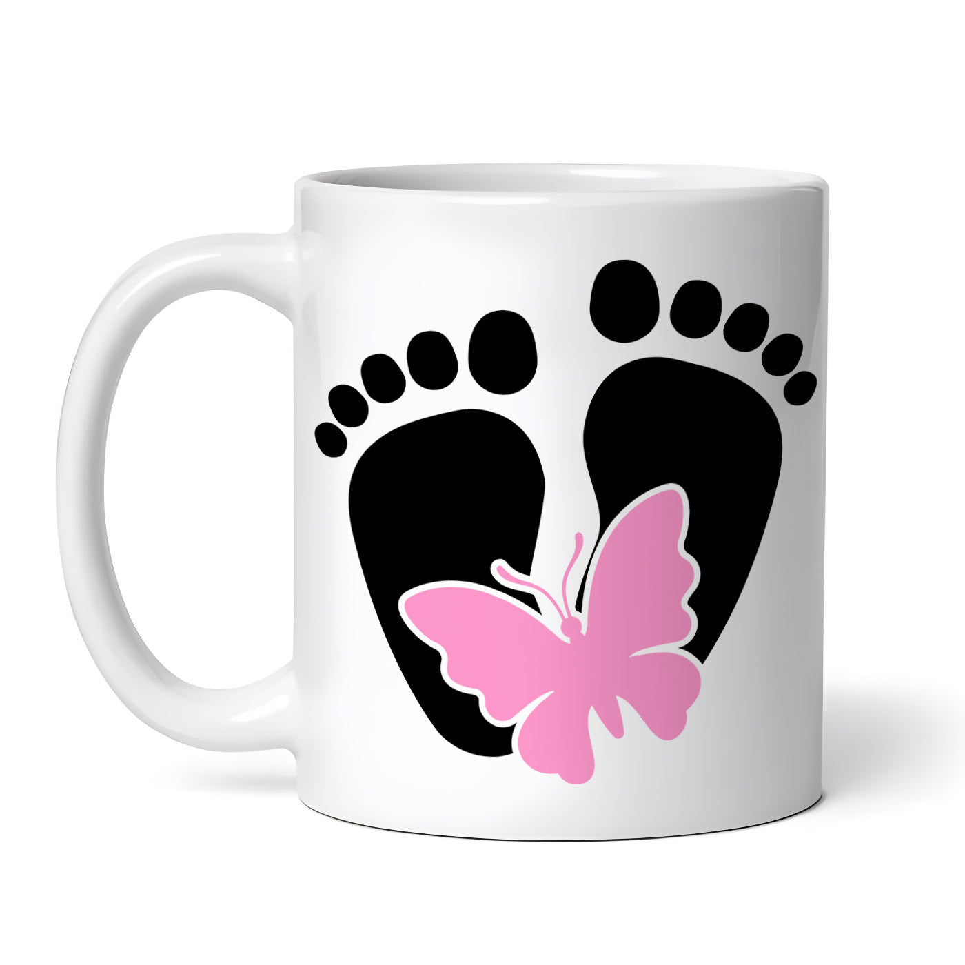 Cana ceramica, Talpi de copil cu fluture roz, NO6595, 330 ml, Multicolor