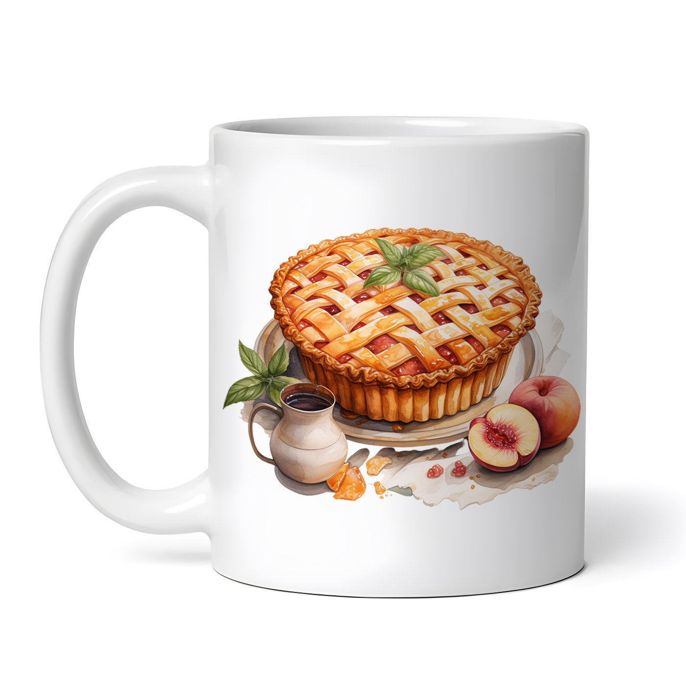 Cana ceramica, Tarta cu piersici si cana cu cafea, NO3781, 330 ml, Multicolor