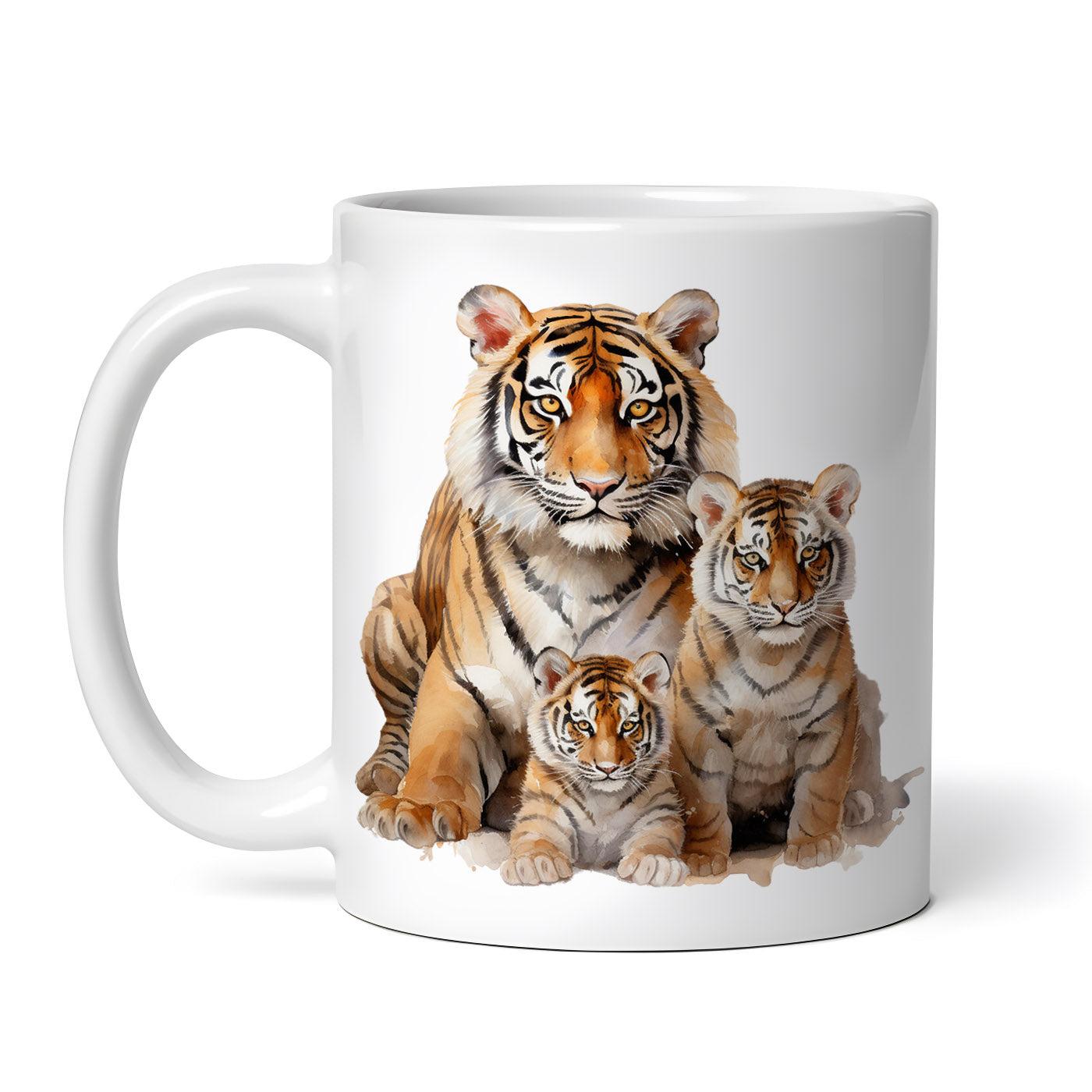 Cana ceramica, Tigrul cu puii, NO2974, 330 ml, Multicolor