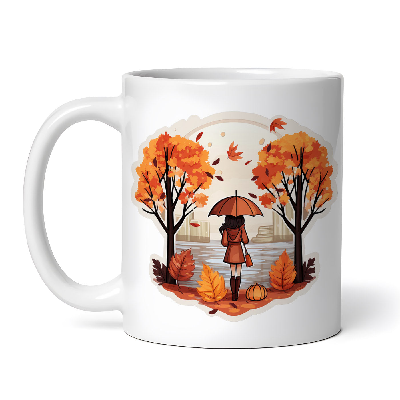 Cana ceramica, Toamna Fata cu umbrela , NO4960, 330 ml, Multicolor