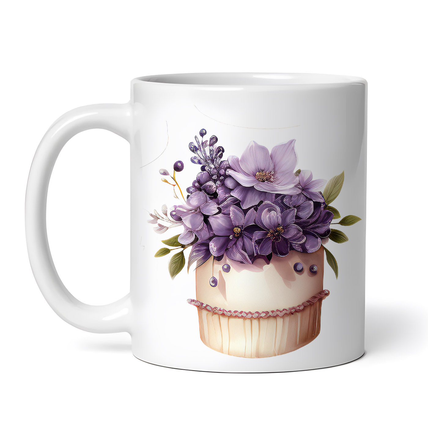 Cana ceramica, Tort briosa cu flori, NO6409, 330 ml, Multicolor