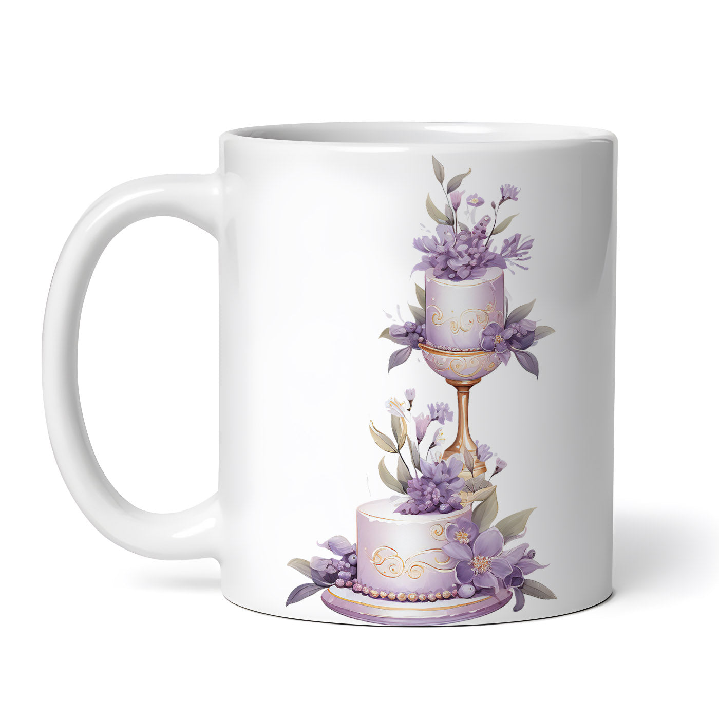 Cana ceramica, Tort cu margele si tort in cupa inalta, NO3536, 330 ml, Multicolor
