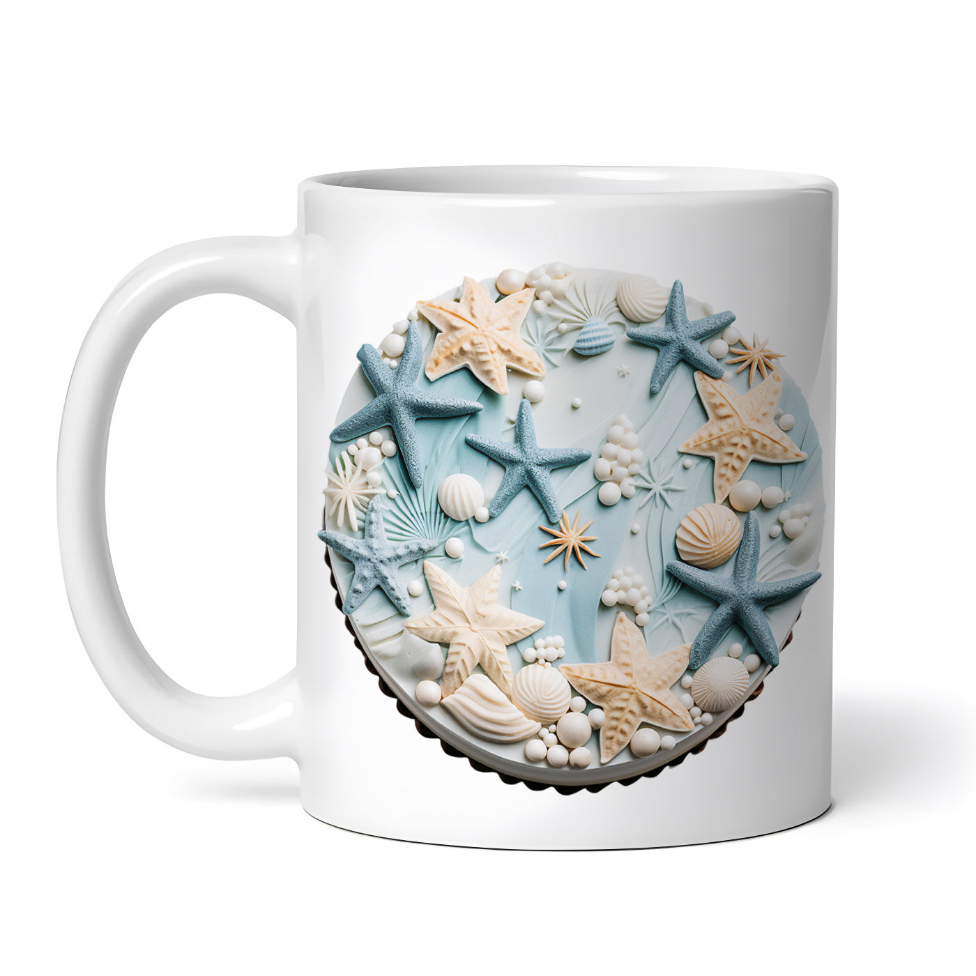 Cana ceramica, Tort cu ornament marin, NO4833, 330 ml, Multicolor