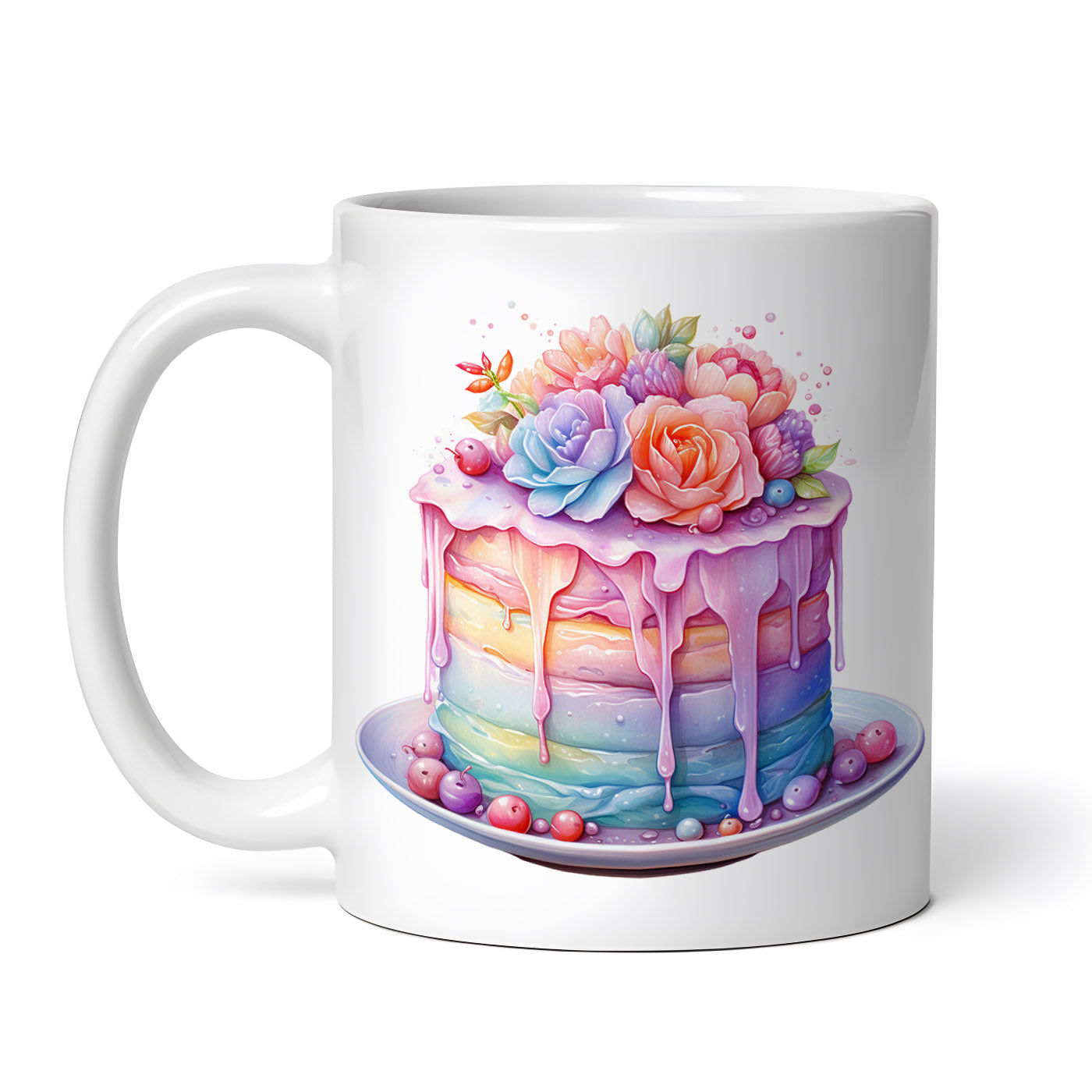 Cana ceramica, Tort curcubeu cu flori, NO3000, 330 ml, Multicolor