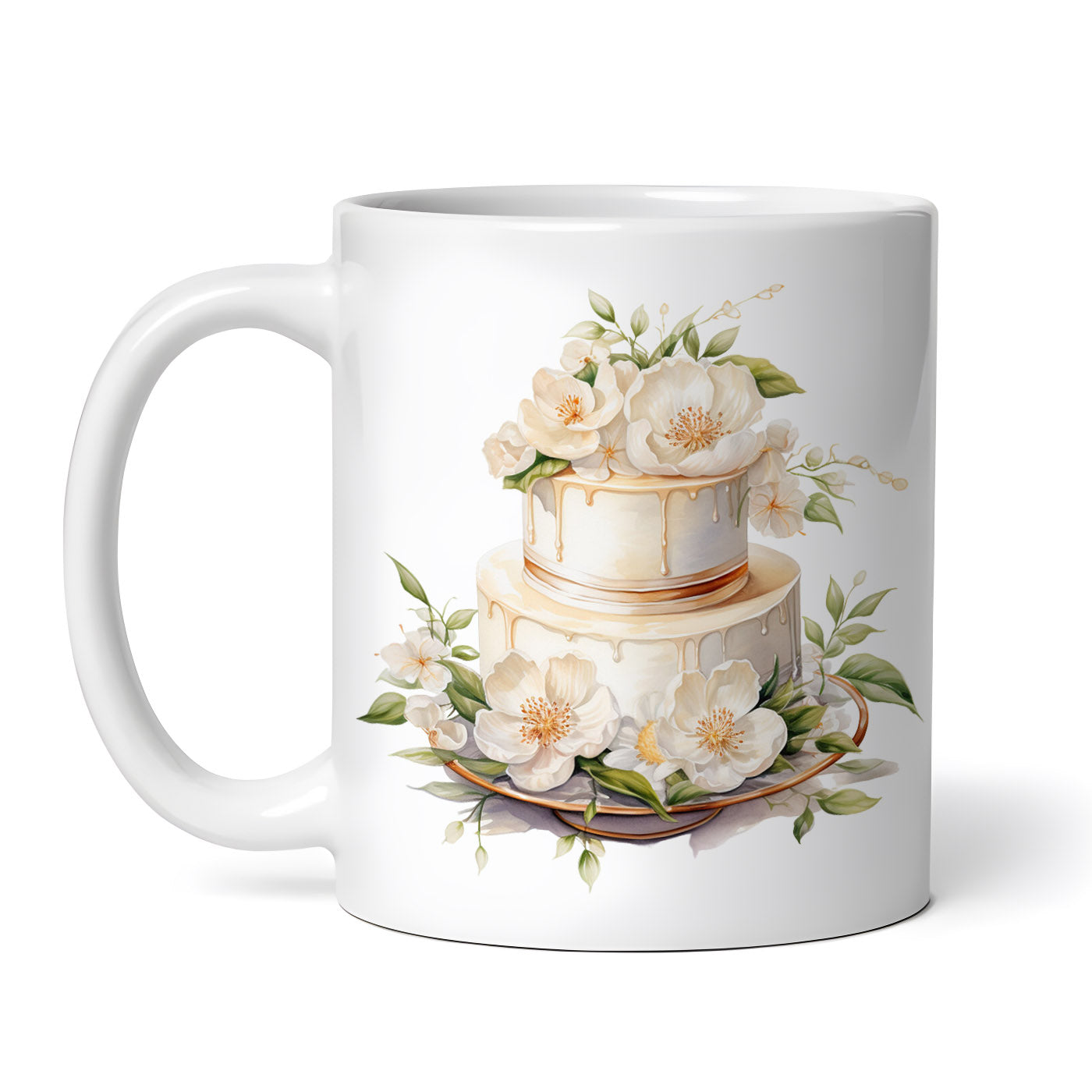 Cana ceramica, Tort de nunta cu bujori albi, NO2632, 330 ml, Multicolor