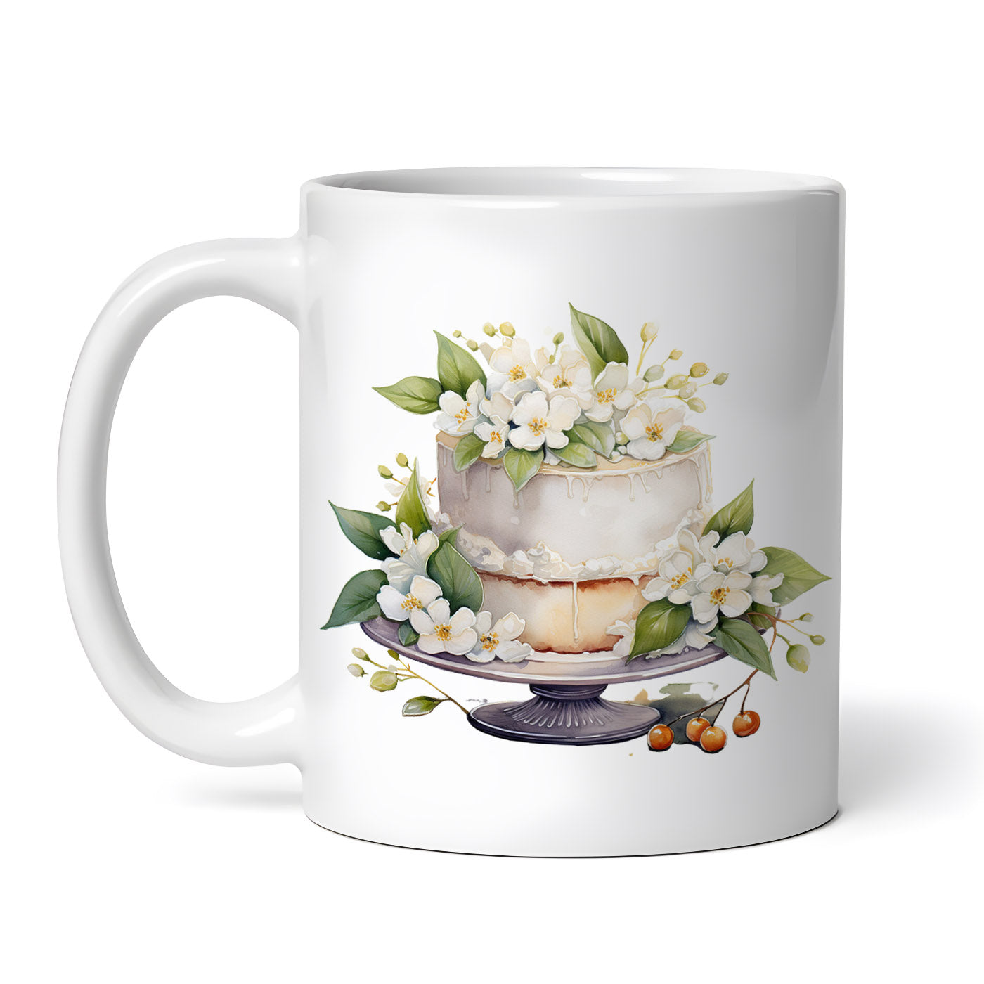 Cana ceramica, Tort de nunta cu flori de iasomie, NO4299, 330 ml, Multicolor