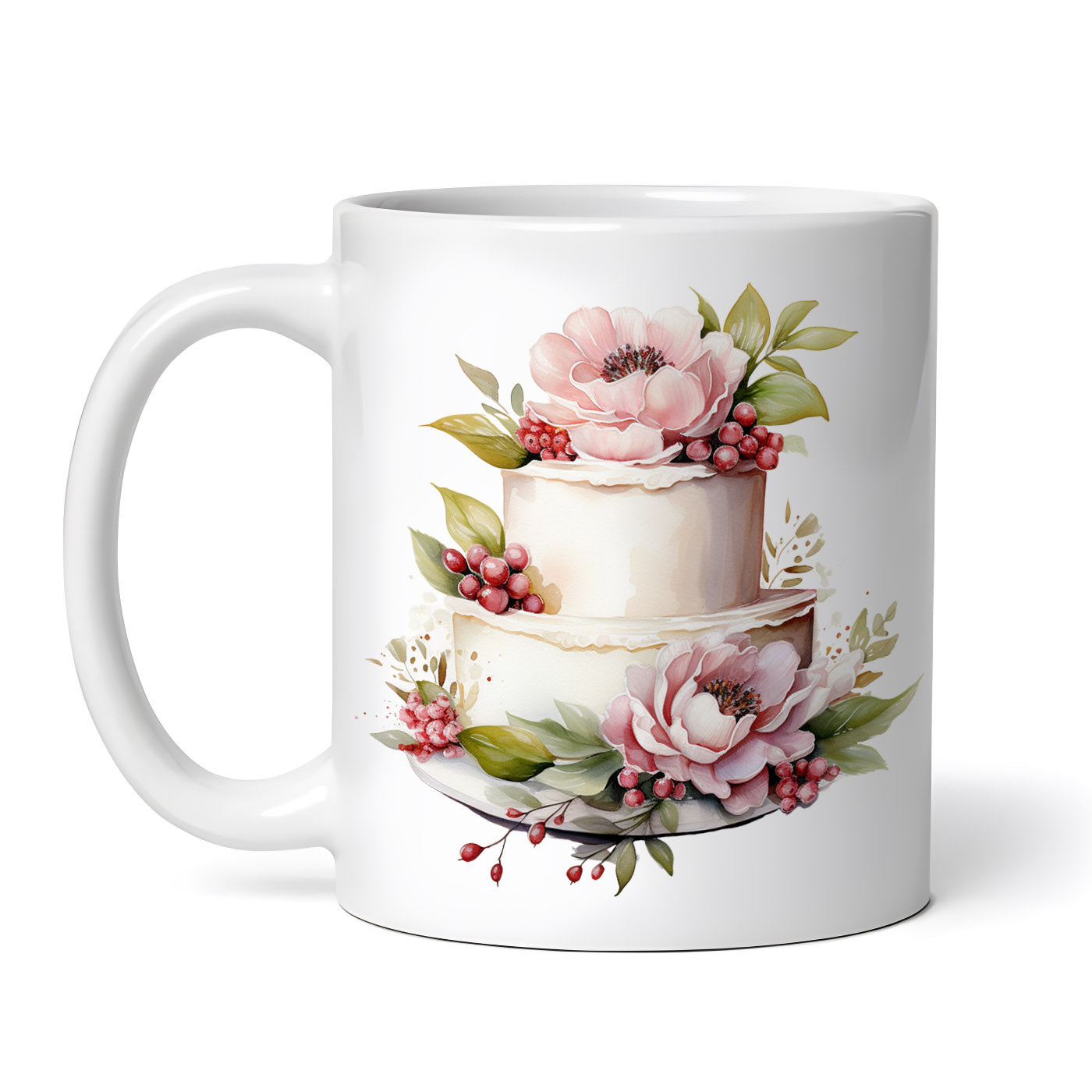 Cana ceramica, Tort de nunta cu fructe si flori roz, NO2912, 330 ml, Multicolor