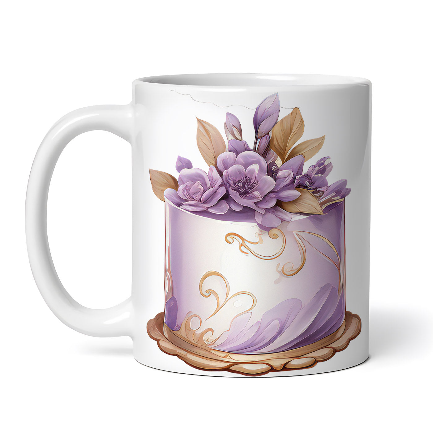 Cana ceramica, Tort mov cu flori si frunze bej, NO4463, 330 ml, Multicolor