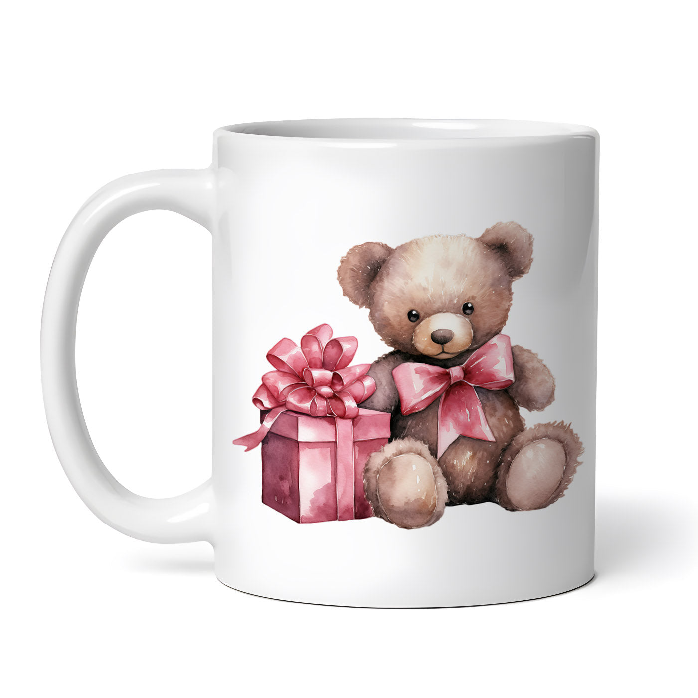 Cana ceramica, Urs cu funda la gat si cadou de craciun, NO378, 330 ml, Multicolor