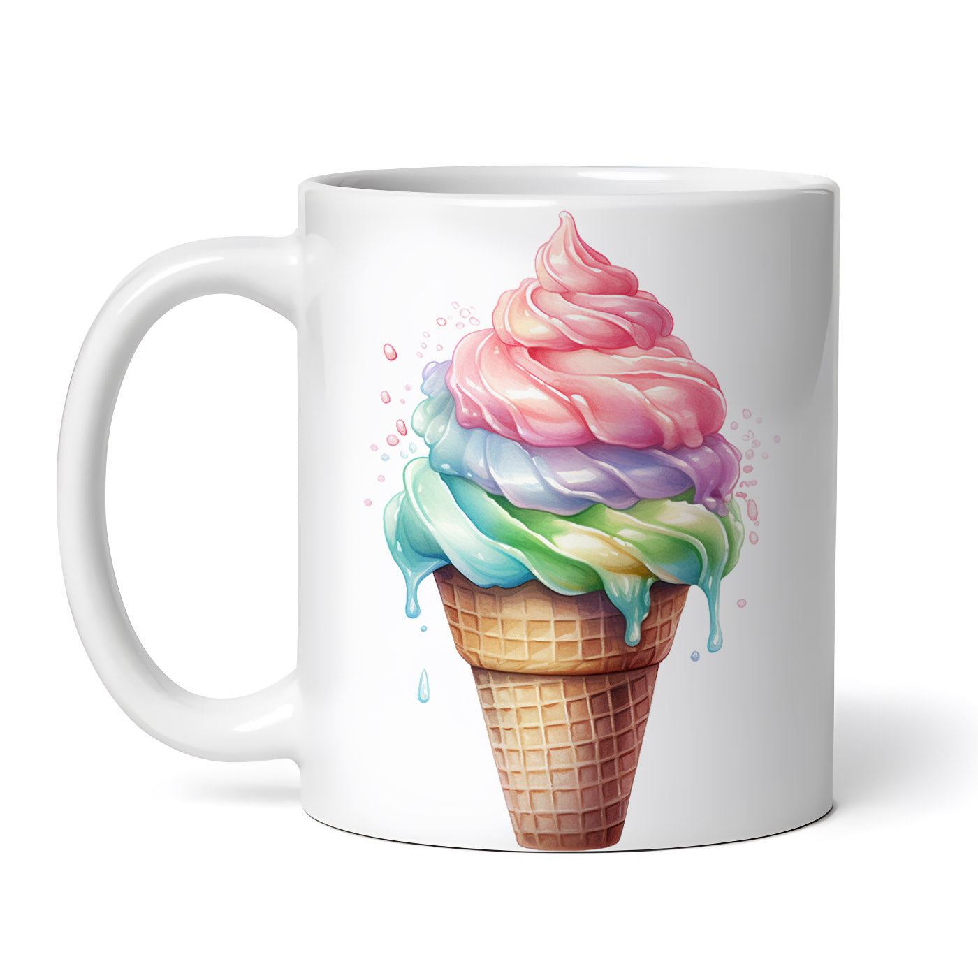 Cana ceramica, Vafa cu inghetata curcubeu, NO3216, 330 ml, Multicolor