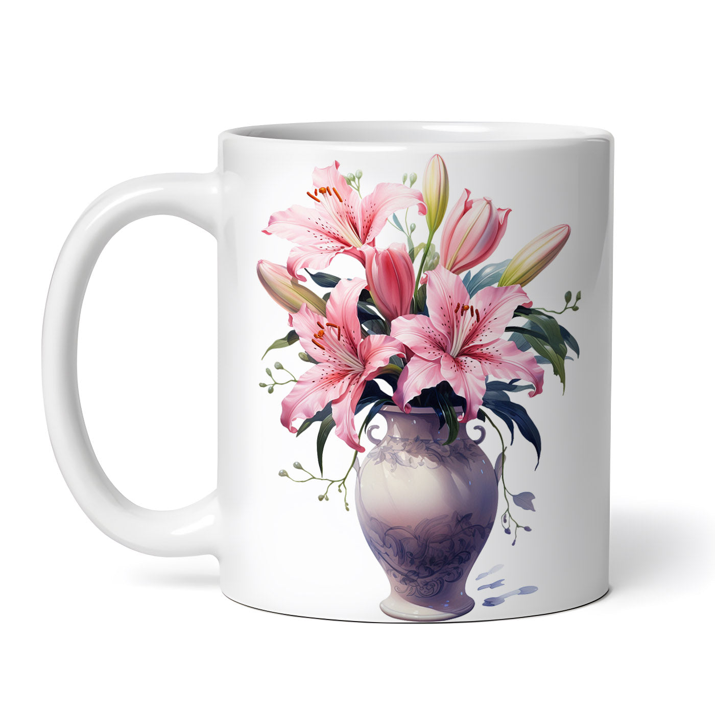 Cana ceramica, Vaza cu crini, NO5707, 330 ml, Multicolor