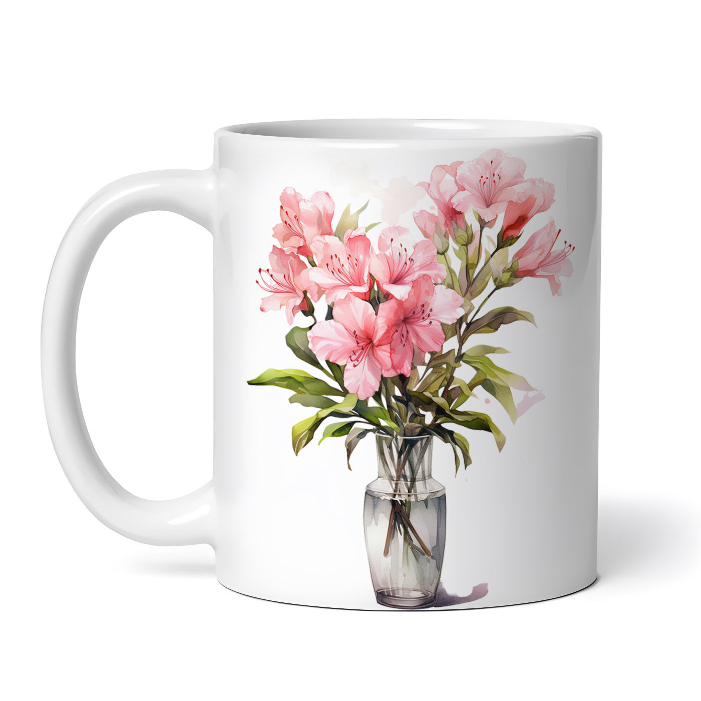 Cana ceramica, Vaza de sticla cu azalee, NO5148, 330 ml, Multicolor
