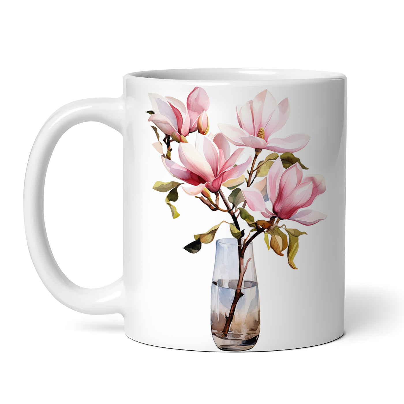 Cana ceramica, Vaza de sticla cu magnolie, NO1034, 330 ml, Multicolor