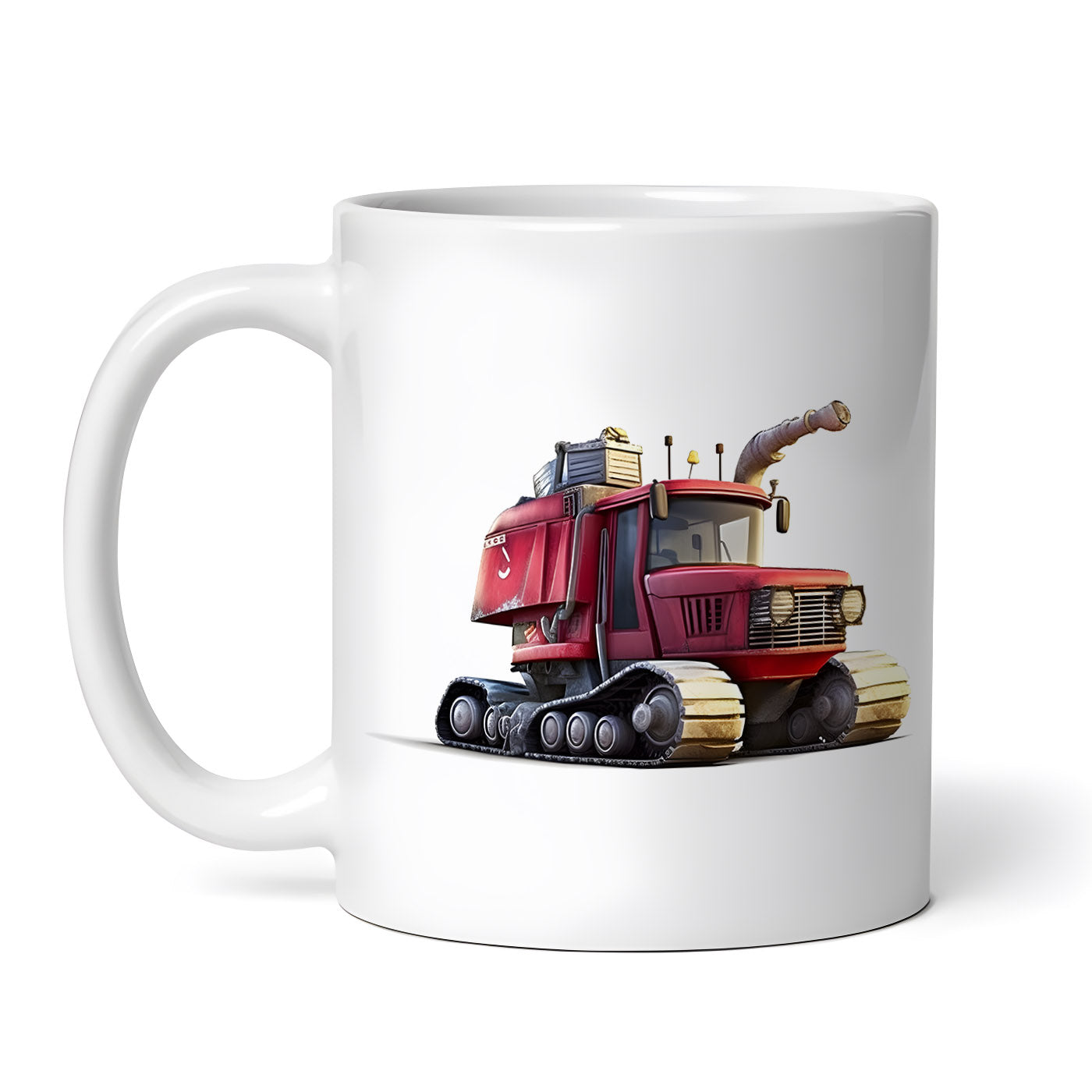 Cana ceramica, Vehicol agricol rosu cu senile, NO5687, 330 ml, Multicolor