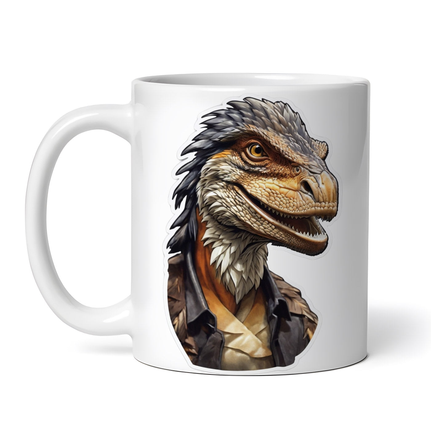 Cana ceramica, Velociraptor cu creasta, NO7135, 330 ml, Multicolor