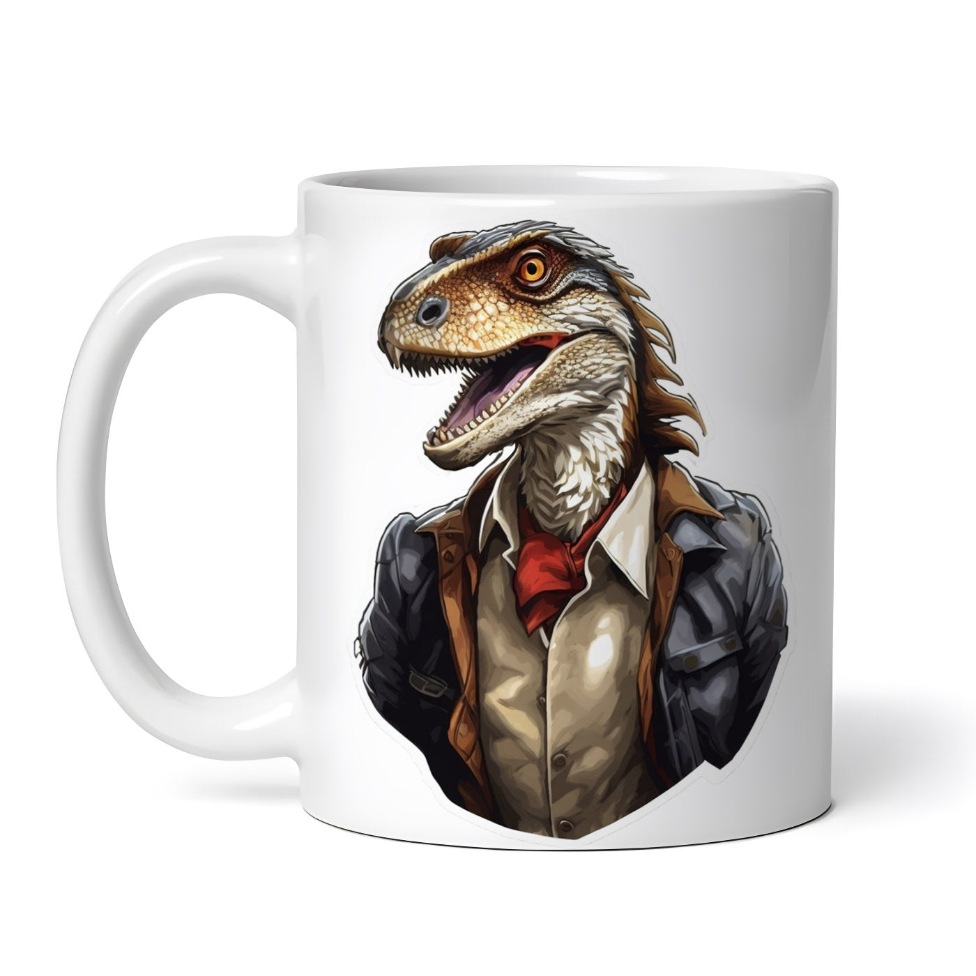 Cana ceramica, Velociraptor cu esarfa, NO7134, 330 ml, Multicolor