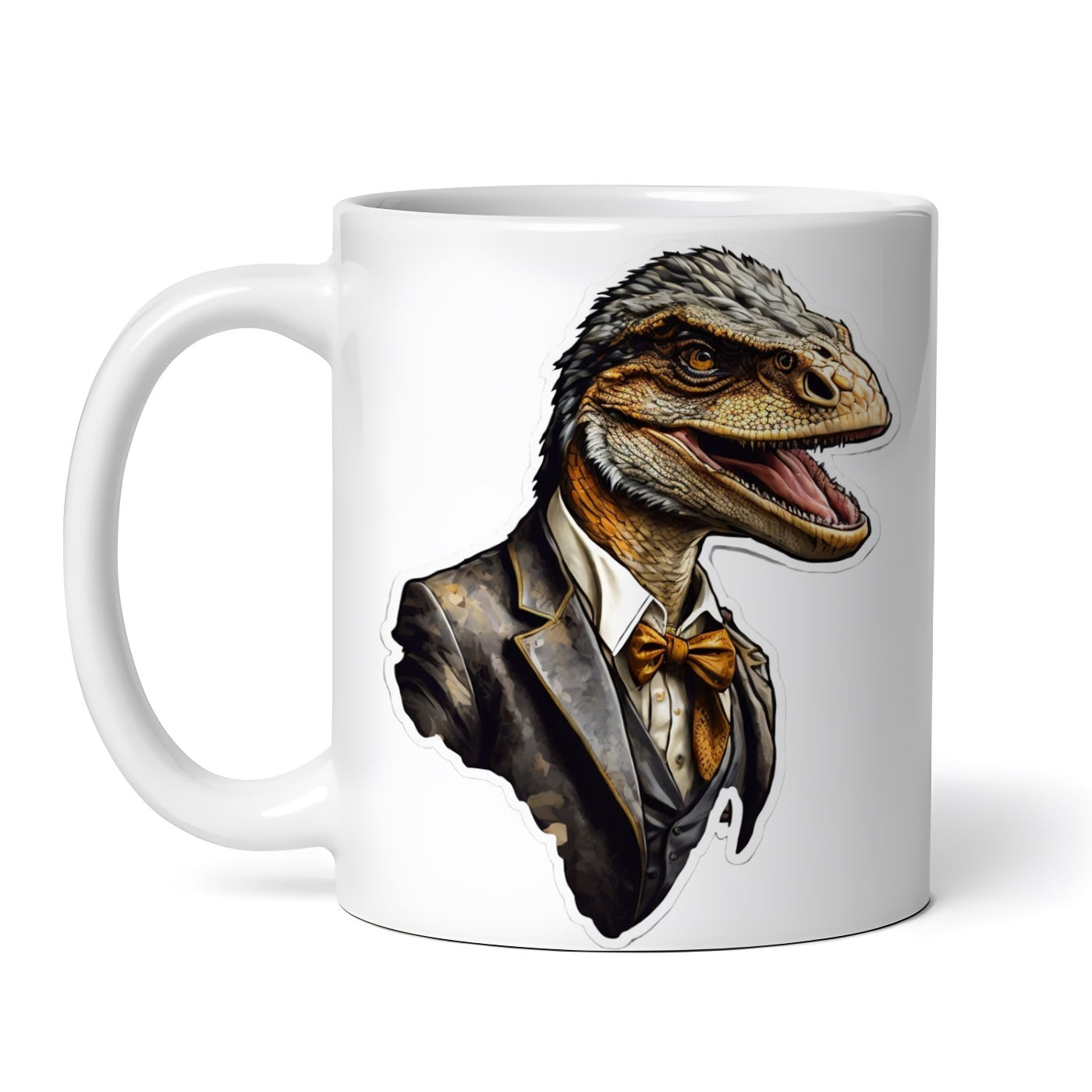 Cana ceramica, Velociraptor cu papion, NO7526, 330 ml, Multicolor