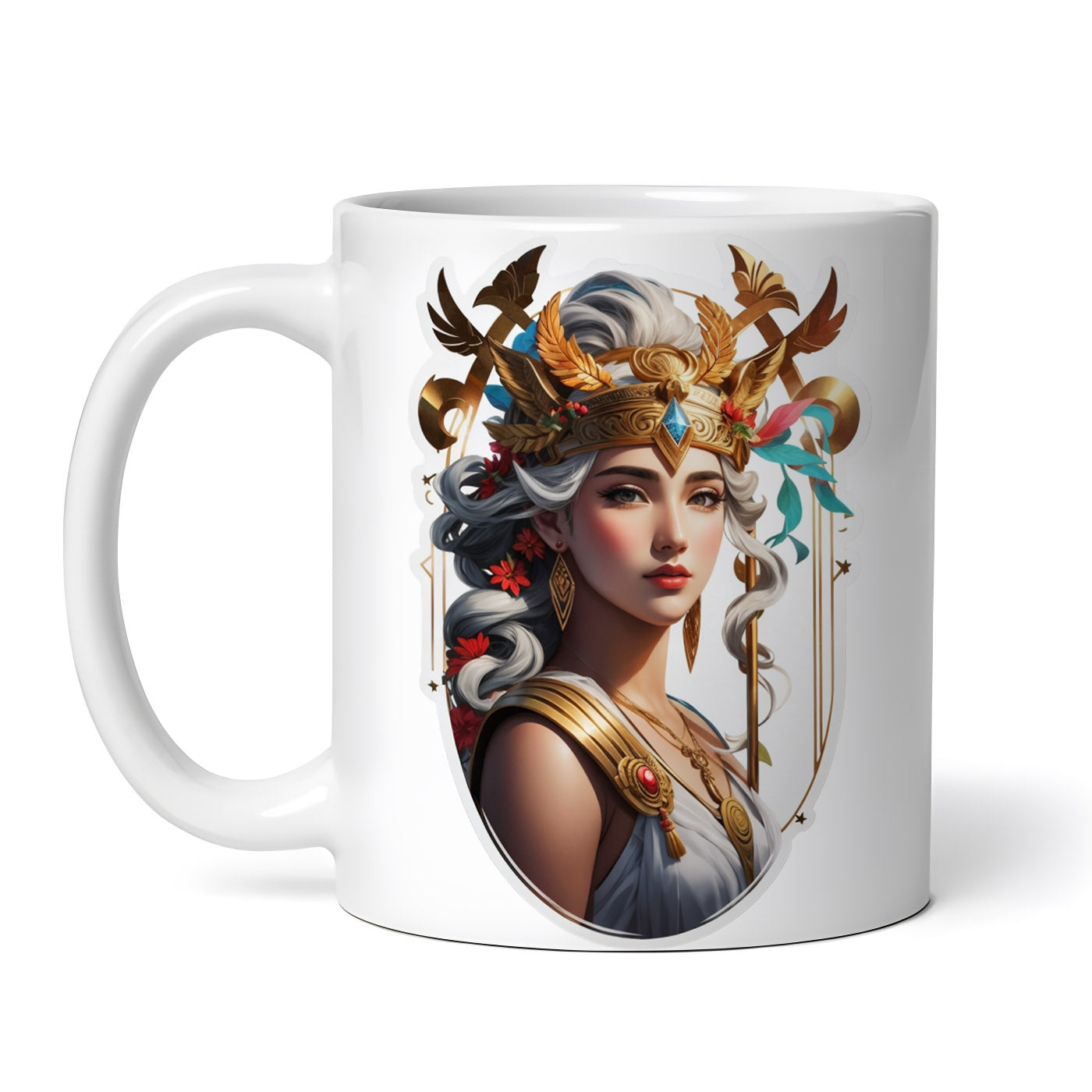 Cana ceramica, Zeita greaca Artemis cu coroana, NO7687, 330 ml, Multicolor