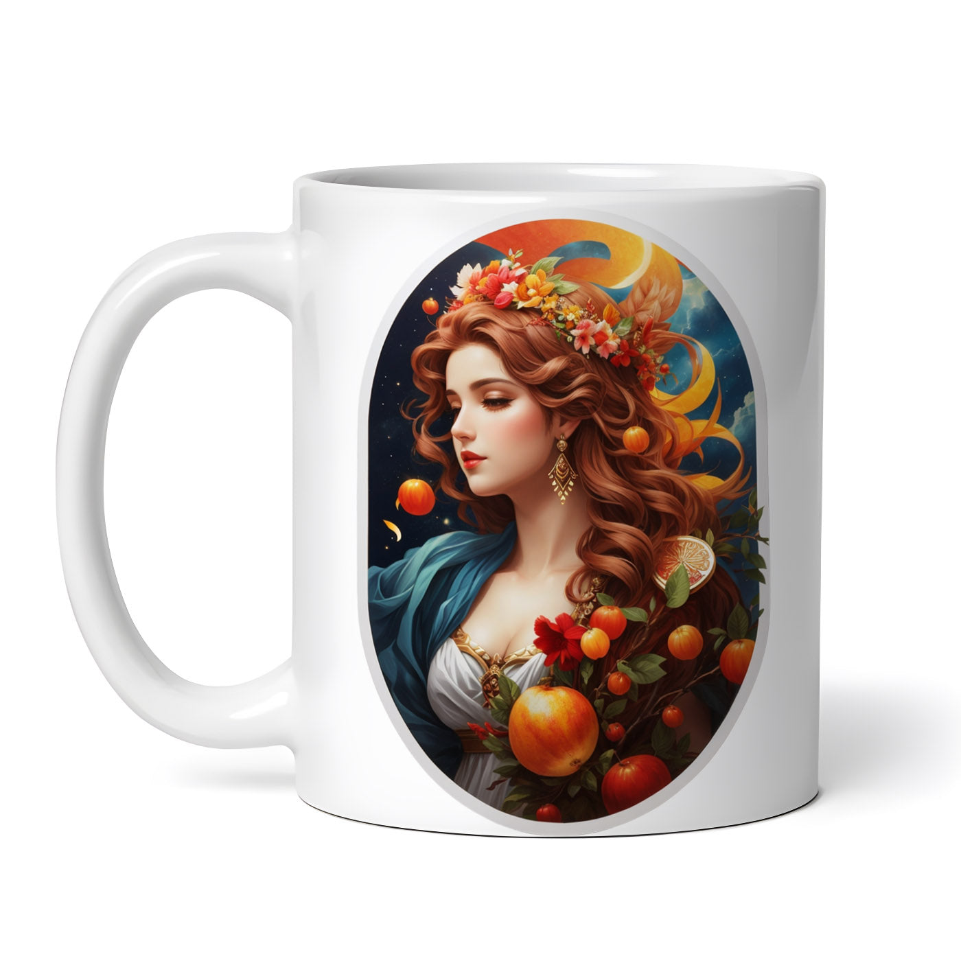 Cana ceramica, Zeita greaca Persephone cu coronita, NO8696, 330 ml, Multicolor