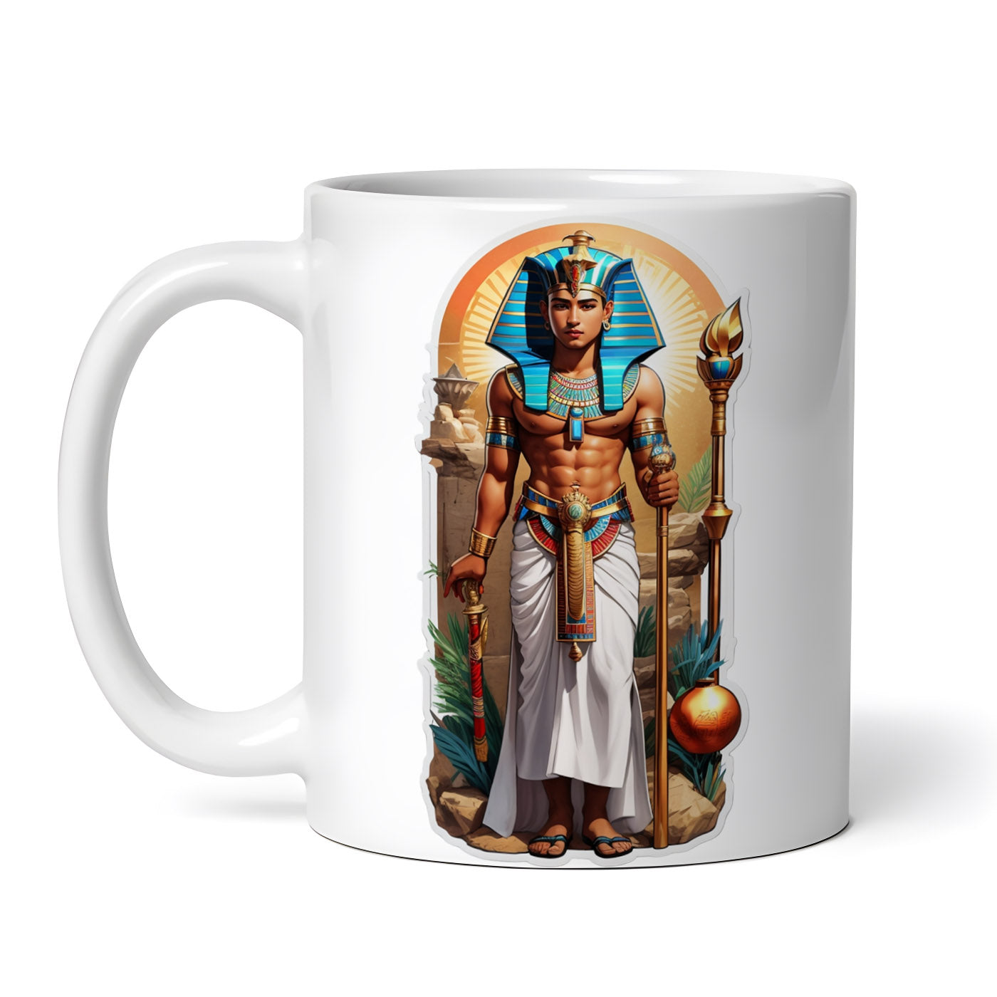 Cana ceramica, Zeul egiptean Thot cu sceptru, NO8966, 330 ml, Multicolor
